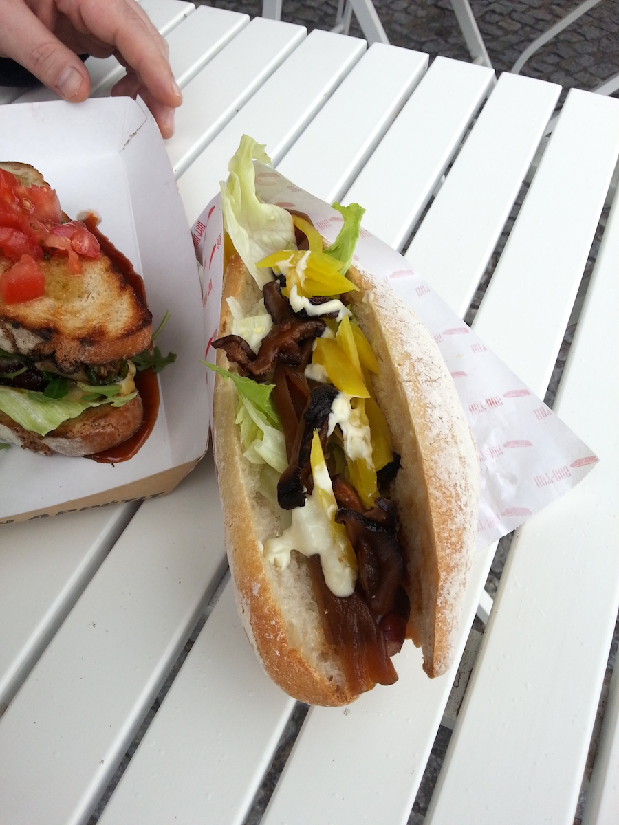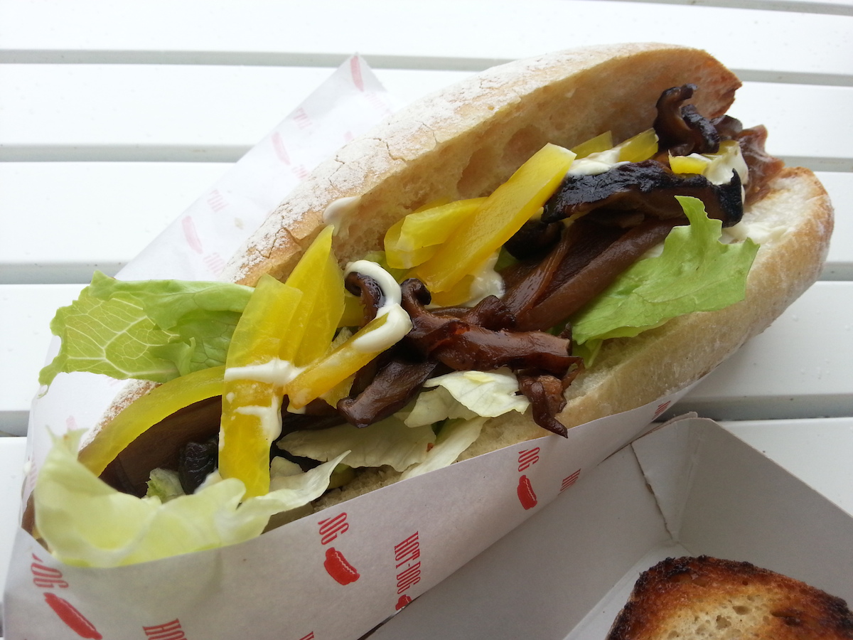 Kaszpir: Pyszne shitake, znakomita grubo zmielona kiełbaska i inne japońskie farfocle, podkreślone nietypowym słodkawym smakiem. Ja dla prawdziwego banzai! Dodałbym odrobinę mocnego akcentu na przykład w postaci bekonu. Znakomita bułka i ciekawa odmiana po słowiańskich hotdogach. Nabrałem apetytu na kolejne wynalazki tej świetnej ekipy. Mają wprowadzać stopniowo i konsultując je z klientami. Trzymam kciuki.