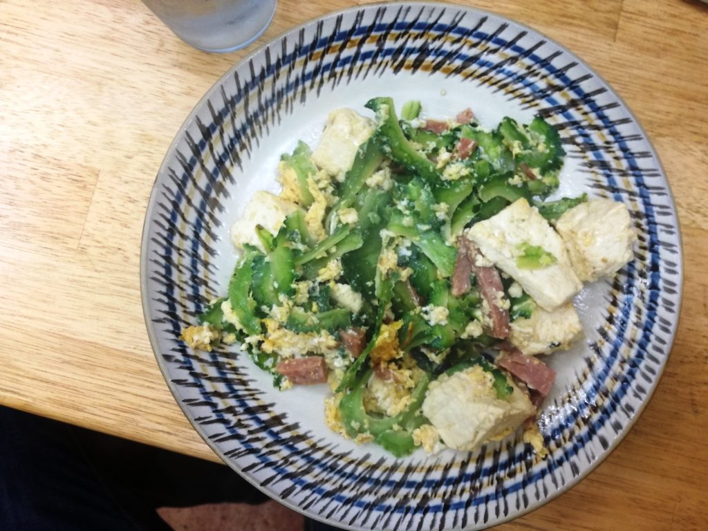 Spróbowałem tu także słynnego champuru. To potrawa z gorzkiego melona, tofu, jajek i amerykańskiej mielonki spam. Mówi się, że to symbol Okinawy. Nazwa oznacza, że wszystko jest pomieszane tak jak tutejsza kultura i społeczeństwo.