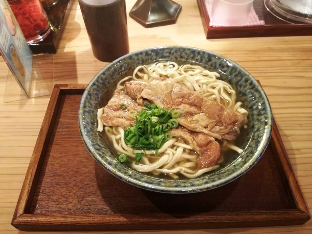 W małych knajpkach na bazarze możemy zjeść okinawa soba, który wbrew nazwie nie zawiera makaronu soba, tylko jest miejscową wersją ramenu.