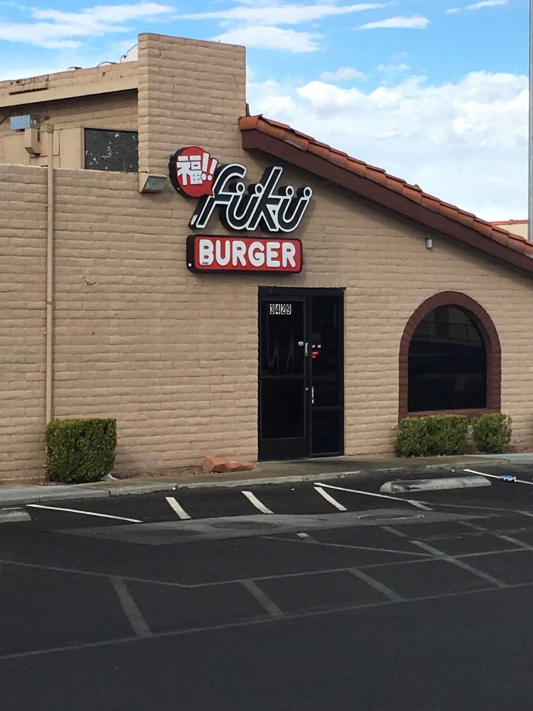 W Vegas miałem upatrzone trzy miejsca. Dwa serwują uliczny fusion, połączenie kuchni amerykańskiej i azjatyckiej, trzeci zaś robi foodpornowe hot dogi. Dziś kilka słów o Fuku Burger. Najpierw był food truck, a później doszedł jeszcze lokal. Fuku Burger serwuje burgery z japońskimi oraz hawajskimi dodatkami, a także hot doga i frytki. Nie udało nam się upolować food trucka, ale do lokalu dotarliśmy.