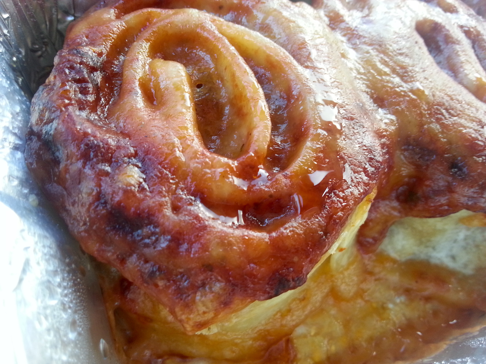 Rolls Bolognese opisano tak: Porcja trzech roladek na bazie makaronu lasagne z farszem wołowo-wieprzowym, na bazie aromatycznych, włoskich pomidorów. Całość zapieczona serem mozzarella. I w sumie tak też wyglądały: