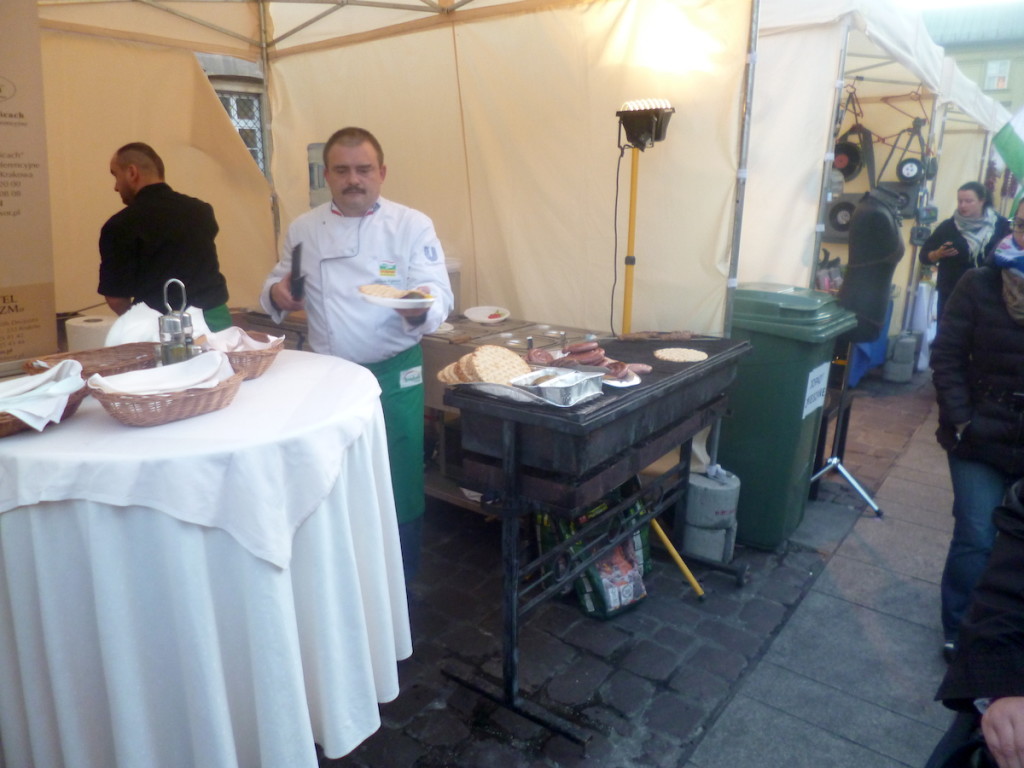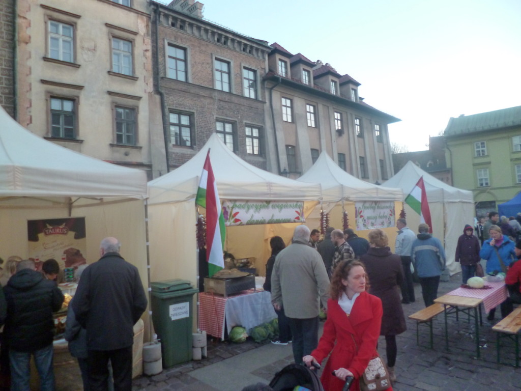 Ilekroć jestem w Krakowie, tylekroć na Rynku trafiam na jakiś festyn. Kramy z regionaliami, jedzeniem i wszystkim, co turyści skłonni są kupić, sąsiadują zazwyczaj ze sceną muzyczną lub lodowiskiem (w zależności od pory roku). Zwykle przechodziłem tylko szybko, by znaleźć jakieś miejsce z jedzeniem pod dachem, tym razem postanowiliśmy chwilę pokręcić się między straganami. I okazało się to dobrym pomysłem, bo dzięki temu trafiliśmy na Festiwal spowalniania czasu/ Jesień leniwców, zjedliśmy coś dobrego i zakupiliśmy kapitalne węgierskie pasty paprykowe i czosnkowe. Ale najpierw skosztowaliśmy jagnięciny.