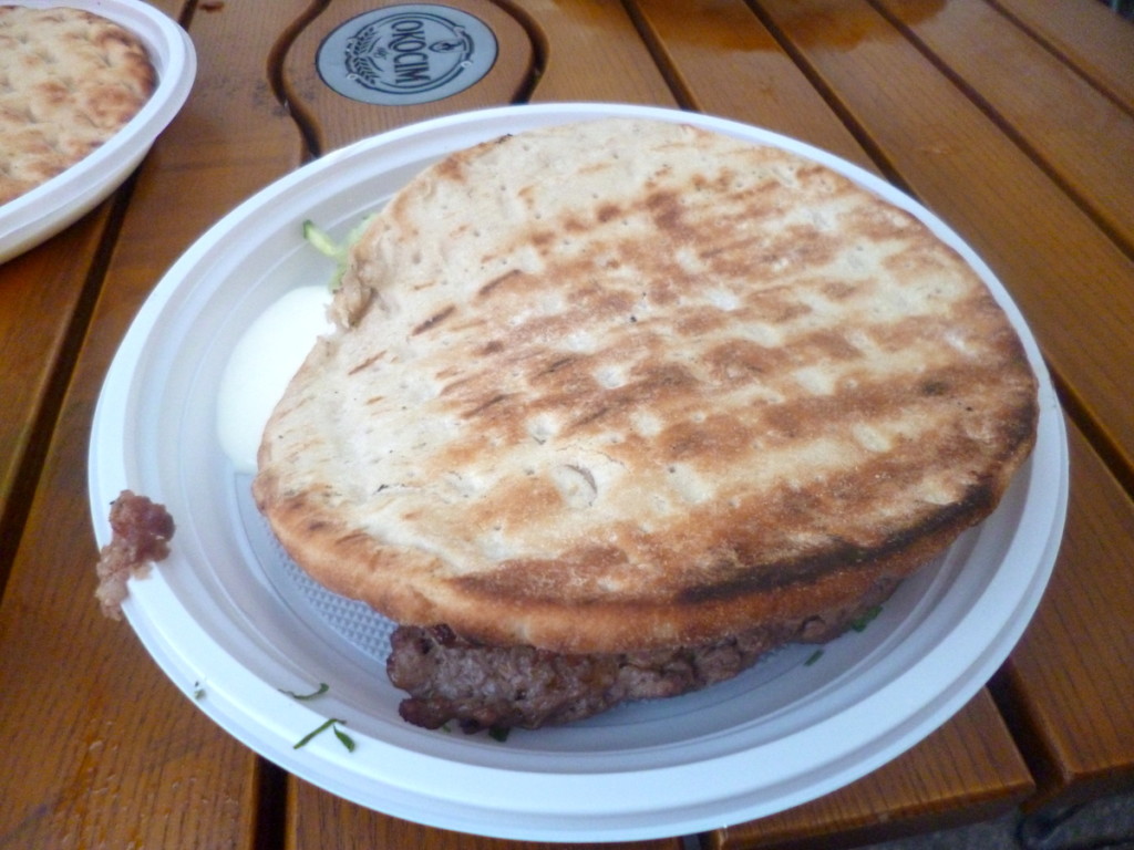 Barania kiełbaska również okazała się doskonała. Mięso świetnie przyprawione, soczyste, a dodatkowo podane w towarzystwie kurdyjskich pikli uwodziło smakiem. Pikle zamarynowane zostały we wschodnich przyprawach, ja doszukałem się m.in. smaku curry. Są naprawdę świetne i kapitalnie się z baraniną komponowały.