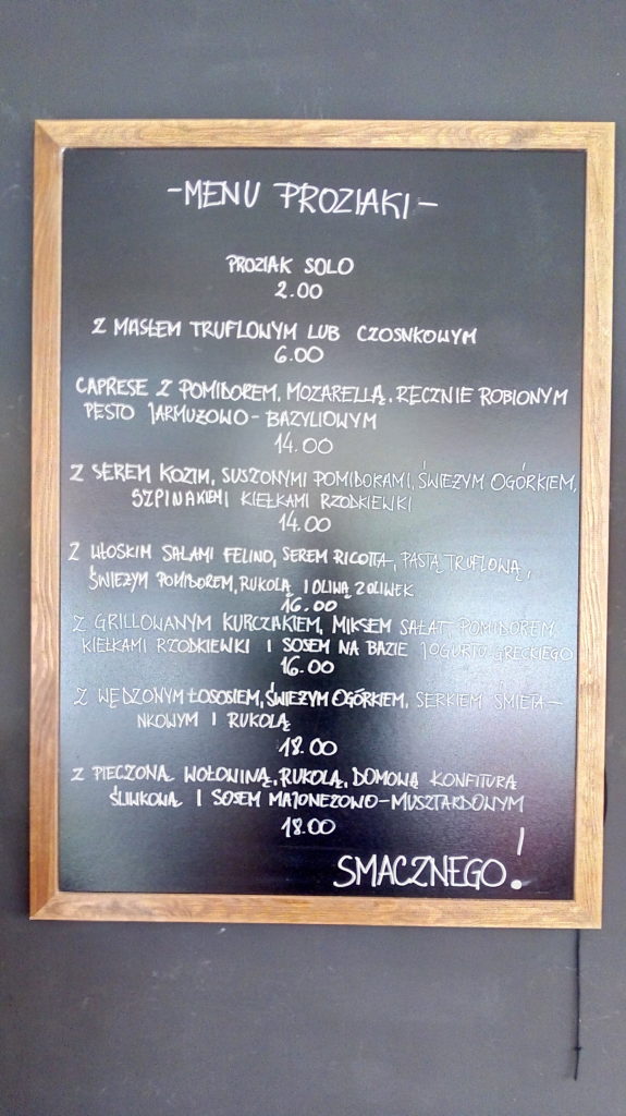 Proces zamówienia jest minimalistyczny: wybieramy pozycję z menu (proziak solo, z masłem, mięsne i wegetariańskie kompozycje), jesteśmy pytani czy zamówienie będzie realizowane na miejscu czy na wynos, płacimy gotówką lub kartą i po kilku minutach proziak jest gotowy.