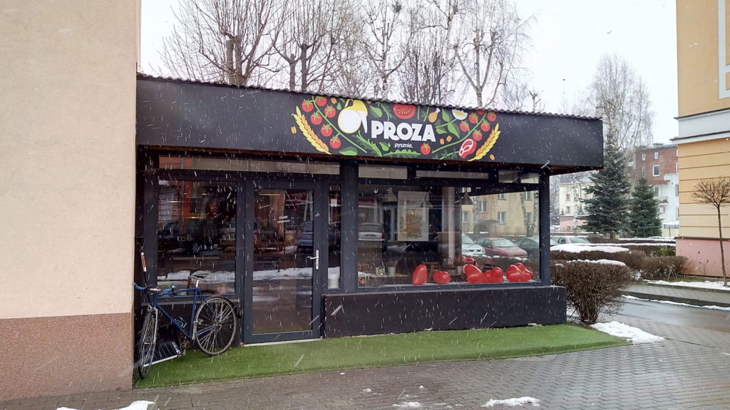 Lokal znajduje się na osiedlu Grota Roweckiego w Rzeszowie (400 metrów od Zamku Lubomirskich), gdzie łatwo dojechać samochodem, komunikacją miejską, rowerem (cały lokal jest przeszklony jak na załączonym obrazku) i naturalnie na piechotę. Proza to coś na wzór „kiosku”, gdzie w środku znajdziecie miejsce dla kilkunastu osób: dwa większe stoliki po 4 miejsca siedzące i dwa mniejsze po trzy. Dla osób mniej lub bardziej dbających o higienię nie zabrakło toalety :) Nie zabrakło dostępu do sieci Wi-Fi z widocznym dla każdego hasłem.