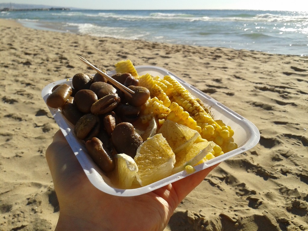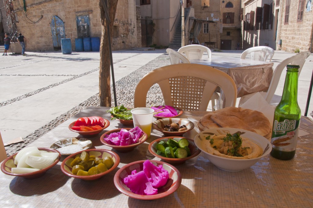 Hummus jedliśmy niemal codziennie w różnych miejscach, ale najlepszy znaleźliśmy zupełnym przypadkiem w Sajdzie, na południe od Bejrutu. Niewielki głód, który nas dopadł błądząc po zakamarkach souków (bazaru) skończył się wielkim obżarstwem na niewielkim placyku starego miasta. W małej knajpce nie posiadającej nawet menu na hasło „hummus”, chłopak wyjął z lodówki wielką miednicę tego specjału i kazał usiąść przy stoliku na zewnątrz. Po chwili zaczęły wjeżdżać małe miseczki z piklami (w tym różowy kalafior i rzepa ;) do tego chleb oraz wielkie porcje hummusu. Ten był naprawdę wyjątkowy, idealnie przyprawiony kuminem i kolendrą, podany z całymi ziarenkami ciecierzycy. Wszystko to nie do przejedzenia, za pornograficzną cenę …około 4 euro.