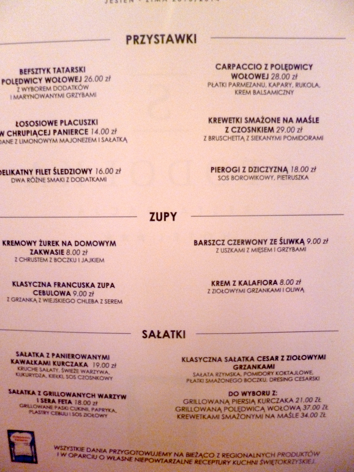 Na stronie www restauracji nie ma menu, co mocno mnie zirytowało, bo jadąc na biesiadę lubię z góry ułożyć sobie „plan działania”.