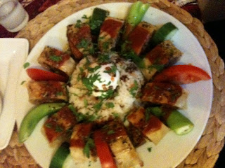 Sultan okazał się najlepszym kebabem, jaki do tej pory jadłem. Danie to składa się z tureckiego chleba, pociętego w kostkę, na którym ułożone są paski cielęciny i baraniny. Do tego pomidor, ostre papryczki i rewelacyjny ayran, czyli gęsty turecki jogurt. Całość polana aromatycznym pomidorowym sosem. Cóż mogę napisać o tej potrawie? Soczyste paski doskonałej baraniny przeplatały się z równie soczystymi paskami cielęciny. Mięso gdzie trzeba twardsze, gdzie trzeba miększe, doprawione idealnie, w połączeniu z chlebkiem i jogurtem stanowiły prawdziwą rozkoszą dla wszystkich zmysłów. Sos pomidorowy jest łagodny, jednak na stołach stoją dzbanuszki z sosami: ostrym paprykowym i czosnkowym. Ostry to mistrzostwo świata – niesamowicie podkreśla smak mięsa, dodając potrawie charakteru. Powtarzam – dla mnie najlepszy kebab, jaki do tej pory miałem okazje jeść.