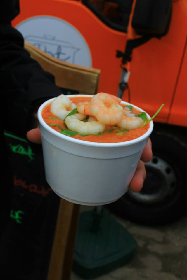Ostrość przełamana smakiem mleczka kokosowego (ortodoksi go nie uznają, ale ja uwielbiam). Obłędny zapach. A w środku kawałeczki mięciutkiego kalmara, grzybki shitake i oczywiście doskonale ugotowane krewetki. Wszystko prawie rozpływające się w ustach, ale nie rozgotowane. Dodatek ryżu powoduje, że za 12 złotych otrzymujemy jeden z najlepszych eintopfów jakie jadłem w warszawskich food truckach. Moja od dziś obowiązkowa pozycja podobnie jak wege curry od Pot Spota.